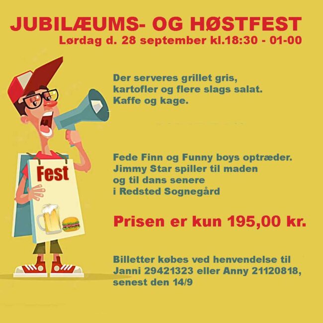 Jubilæums- og Høstfest NyhederUdgivet af Redsted Beboerforening3. juni 2024Adressen er: Vindbakken 10,
